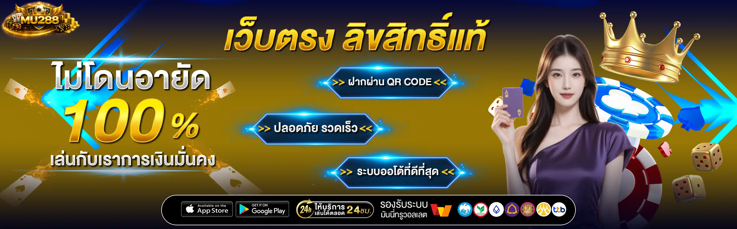 นอกจากนี้ ระบบการฝาก-ถอนเงินของ MU288 ยังทำได้รวดเร็วทันใจ ใช้เวลาไม่เกิน 30 วินาที และรองรับทุกธนาคารชั้นนำในประเทศไทย รวมถึง e-wallet ยอดนิยมอย่าง True Money Wallet ทำให้สะดวกสบายมากๆ ในการทำธุรกรรม ที่สำคัญคือมีทีมงานคอยให้บริการตลอด 24 ชั่วโมงผ่านช่องทาง Live Chat ไลน์ และโทรศัพท์ พร้อมแก้ไขปัญหาให้สมาชิกทันที
